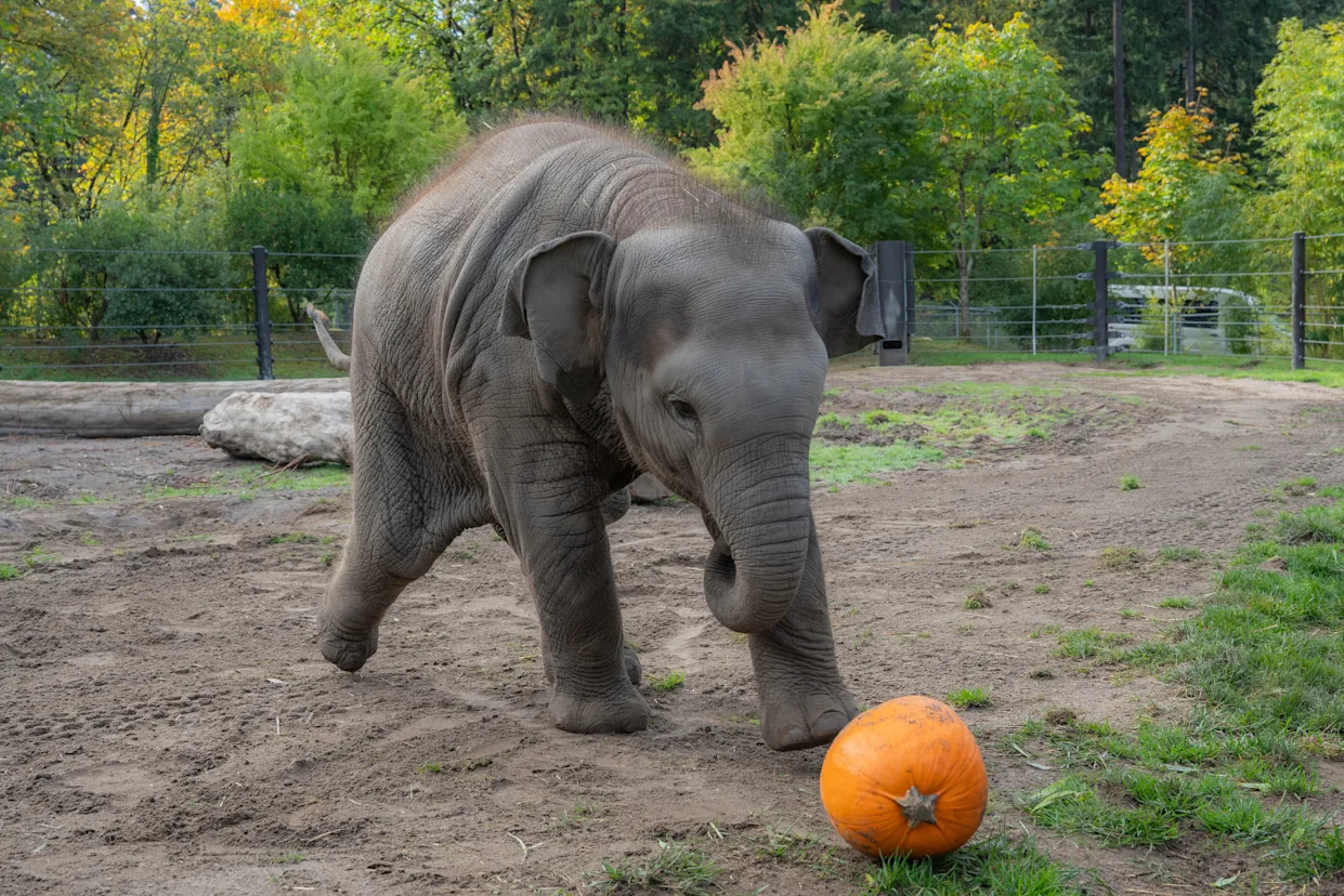 В портлендском зоопарке состоялось ежегодное осеннее мероприятие «Сминаем тыквы», на котором детеныша азиатского слона по имени Тула-Ту можно было увидеть за игрой с маленькой тыквой. В отличие от взрослых животных, которые могут ломать большие тыквы, Тула-Ту, весом всего 351,5 килограмма, пока слишком мала для таких трюков. Однако это не помешало ей продемонстрировать свои навыки: в специальном видеоролике зоопарка она с удовольствием катала тыкву, словно мяч для футбола.